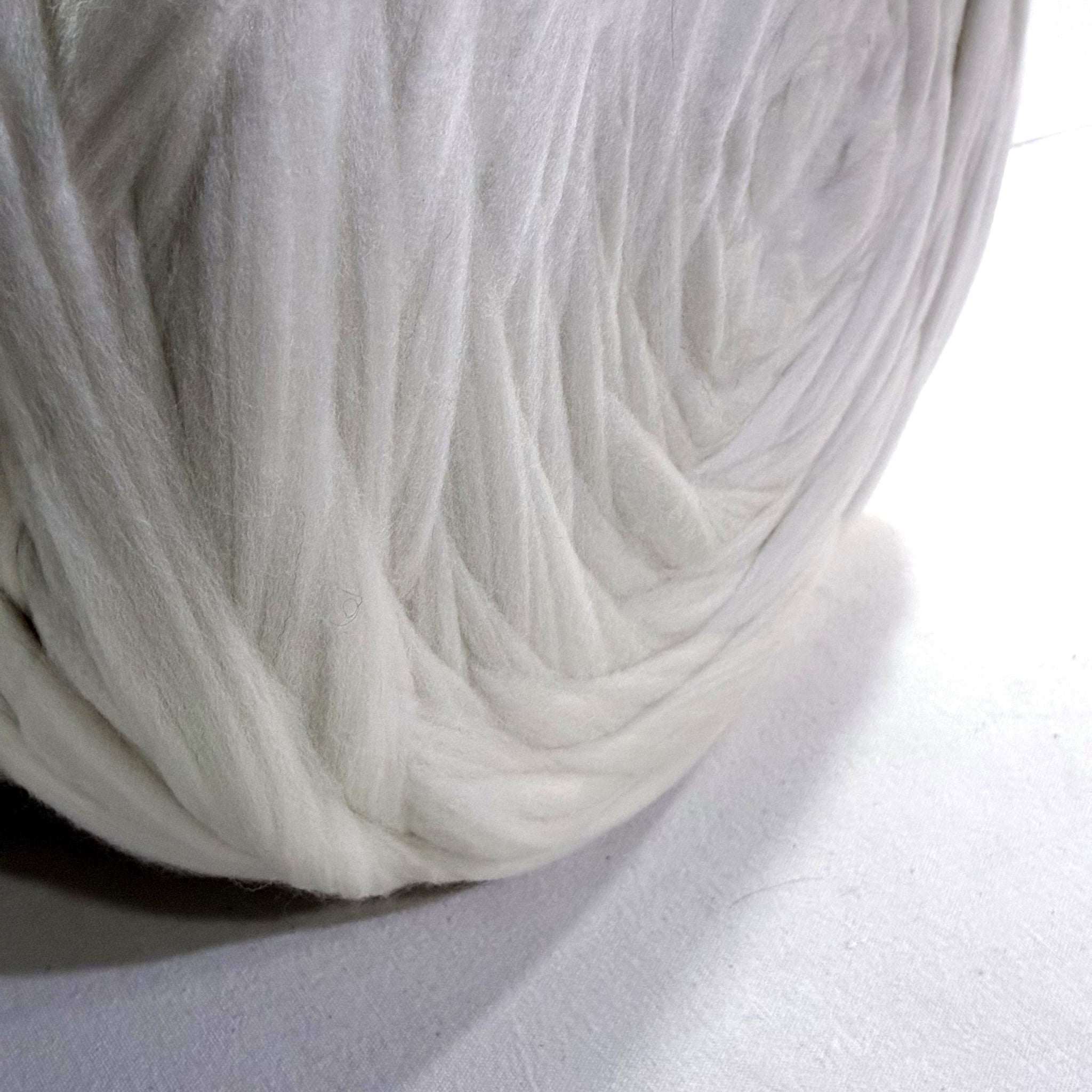 Natural white beautiful 100% Peruvian Highland Wool TOP that is 27.5 microns and sold in one bump that is 22 pounds. A wonderful item for spinning, felting and dyeing. Drafts easily. Peruvian Highland Wool comes from a crossbred sheep that lives in the Peruvian highlands at over 2,000m above sea level. They are a cross between Corriedale (for strength) and Merino (for softness) and when you feel it you can sense the combination of the two. The environment in which they live allows them to produce a wool that is crimpy and durable. Recommended for beginners and experts alike.